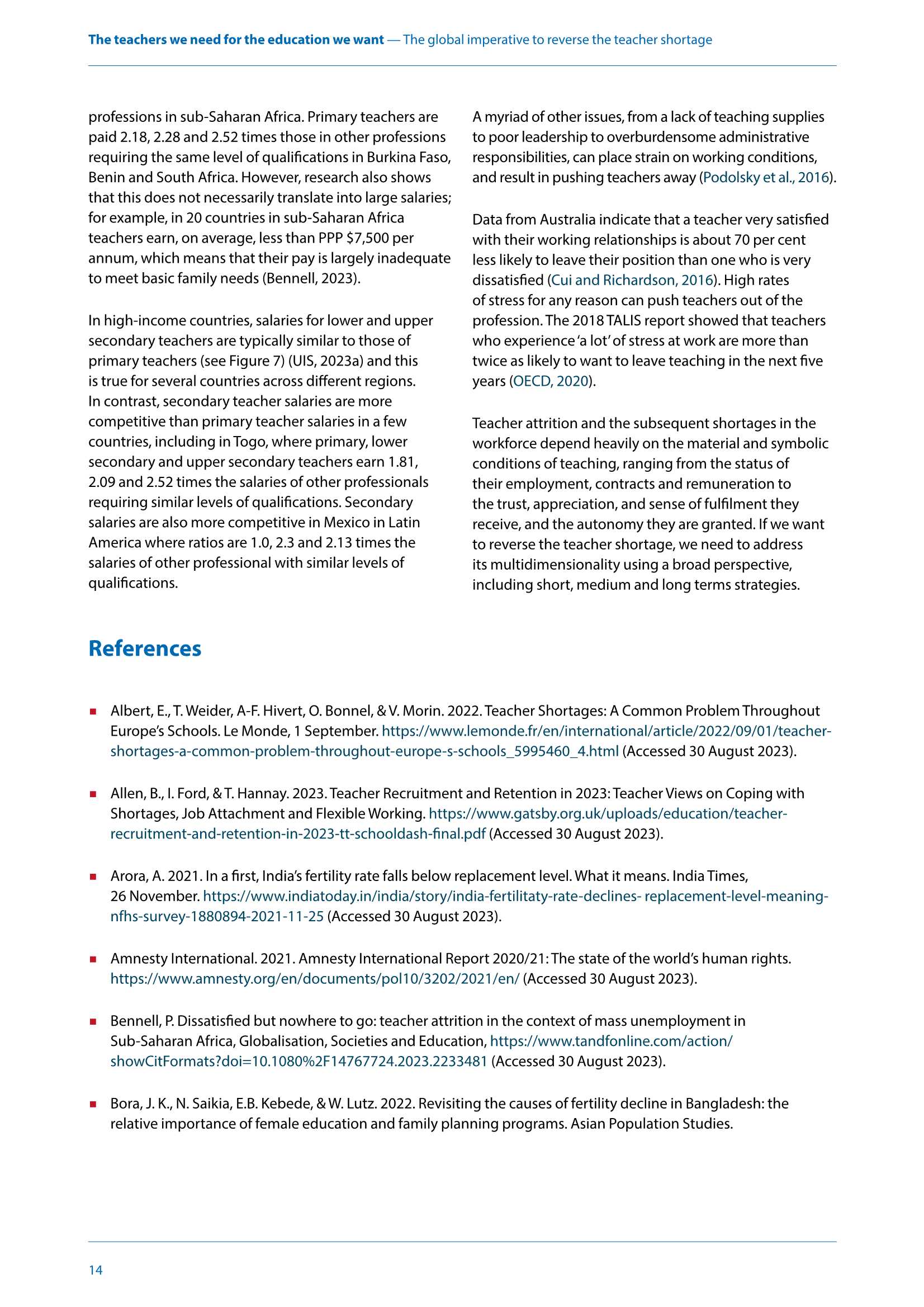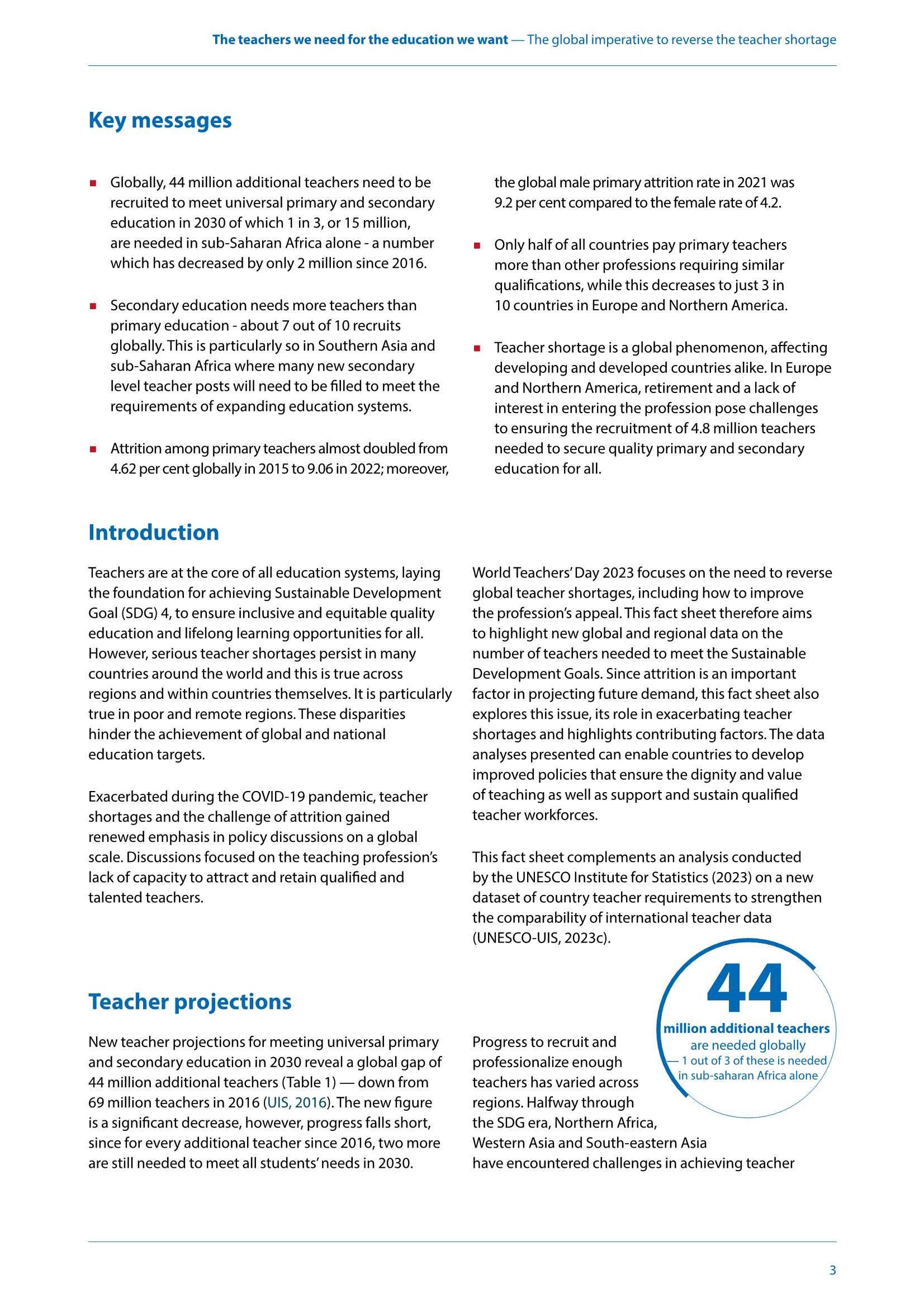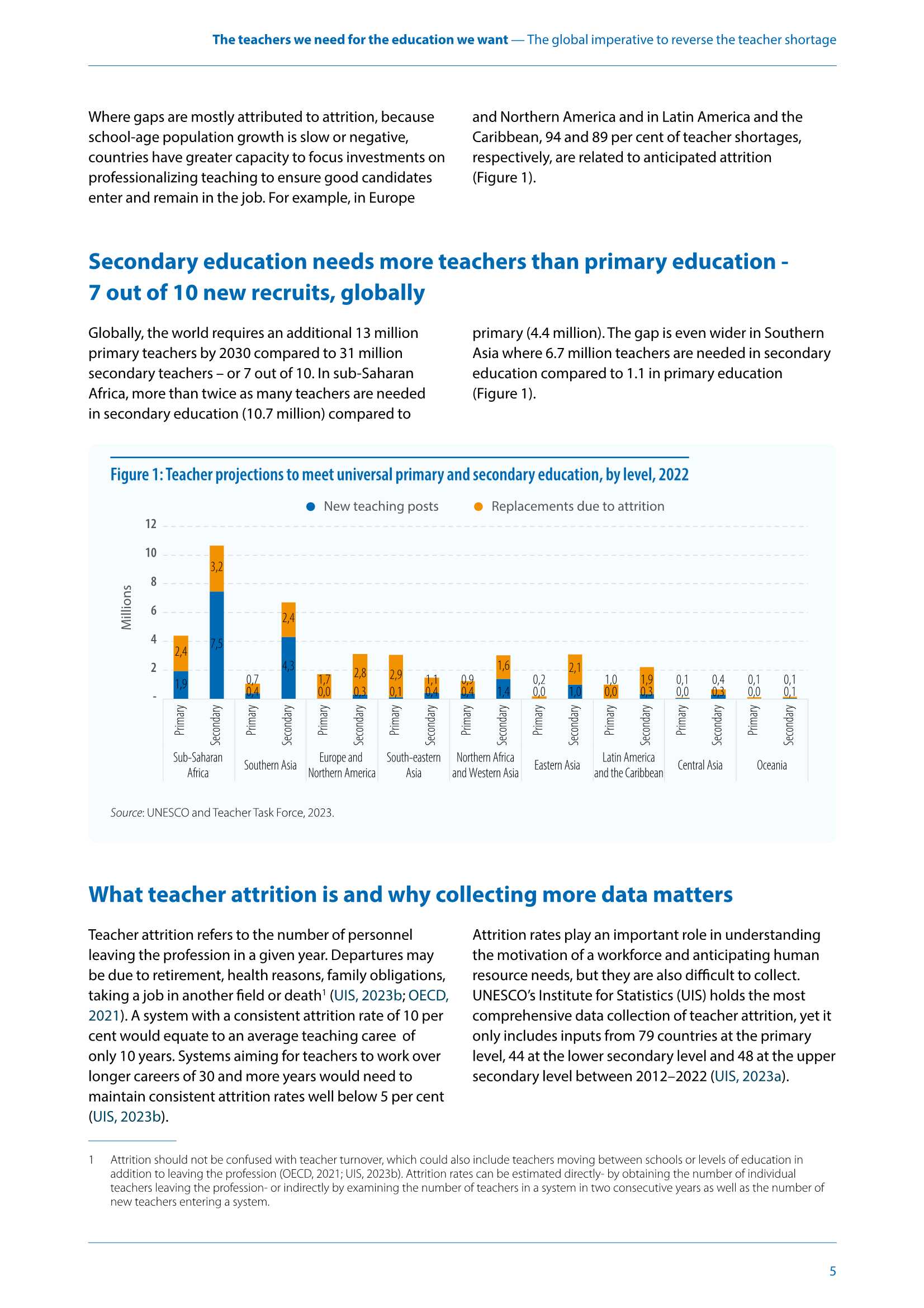 教师短缺是一个全球性的现象,为实现2030年普及初等和中等教育,