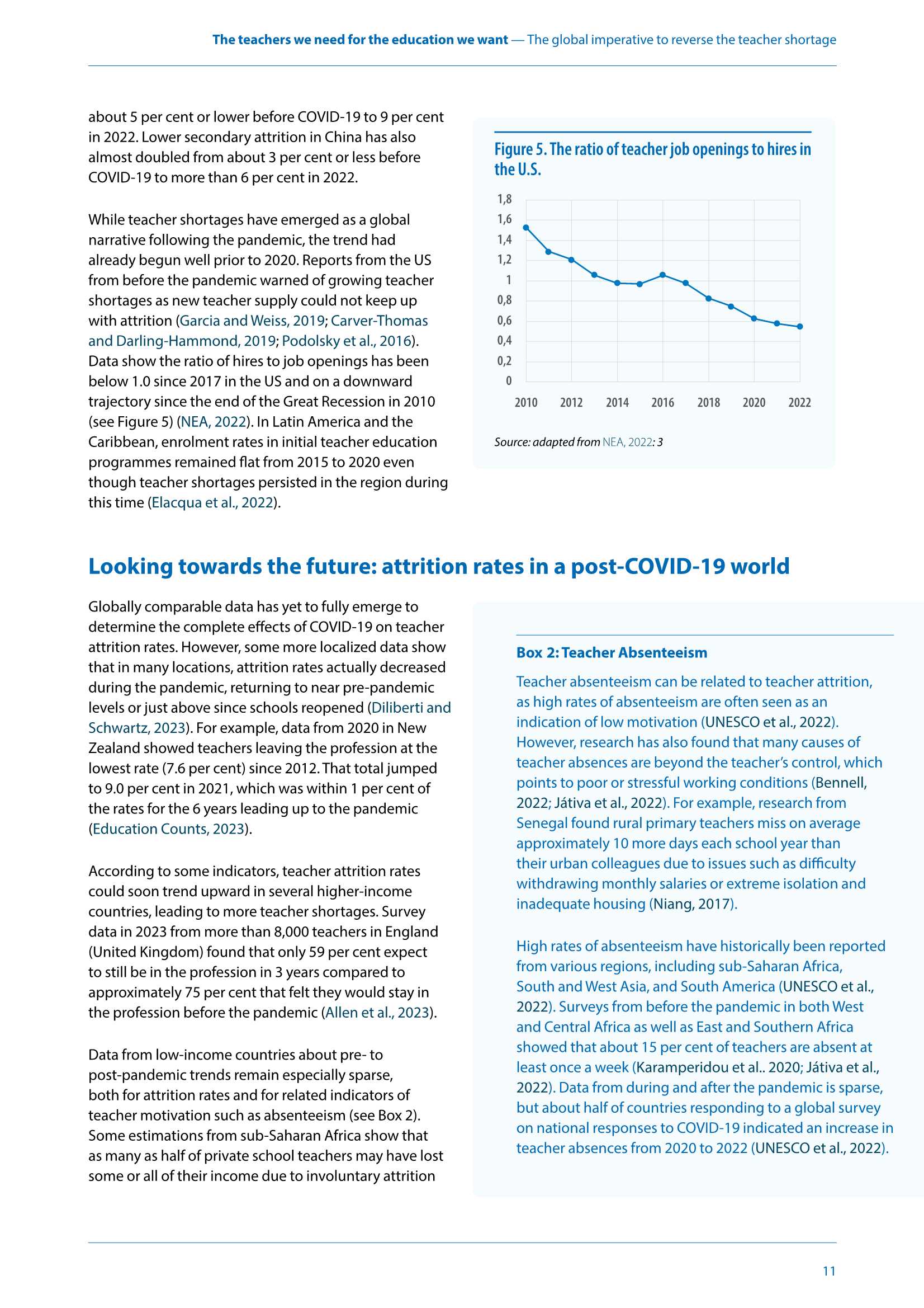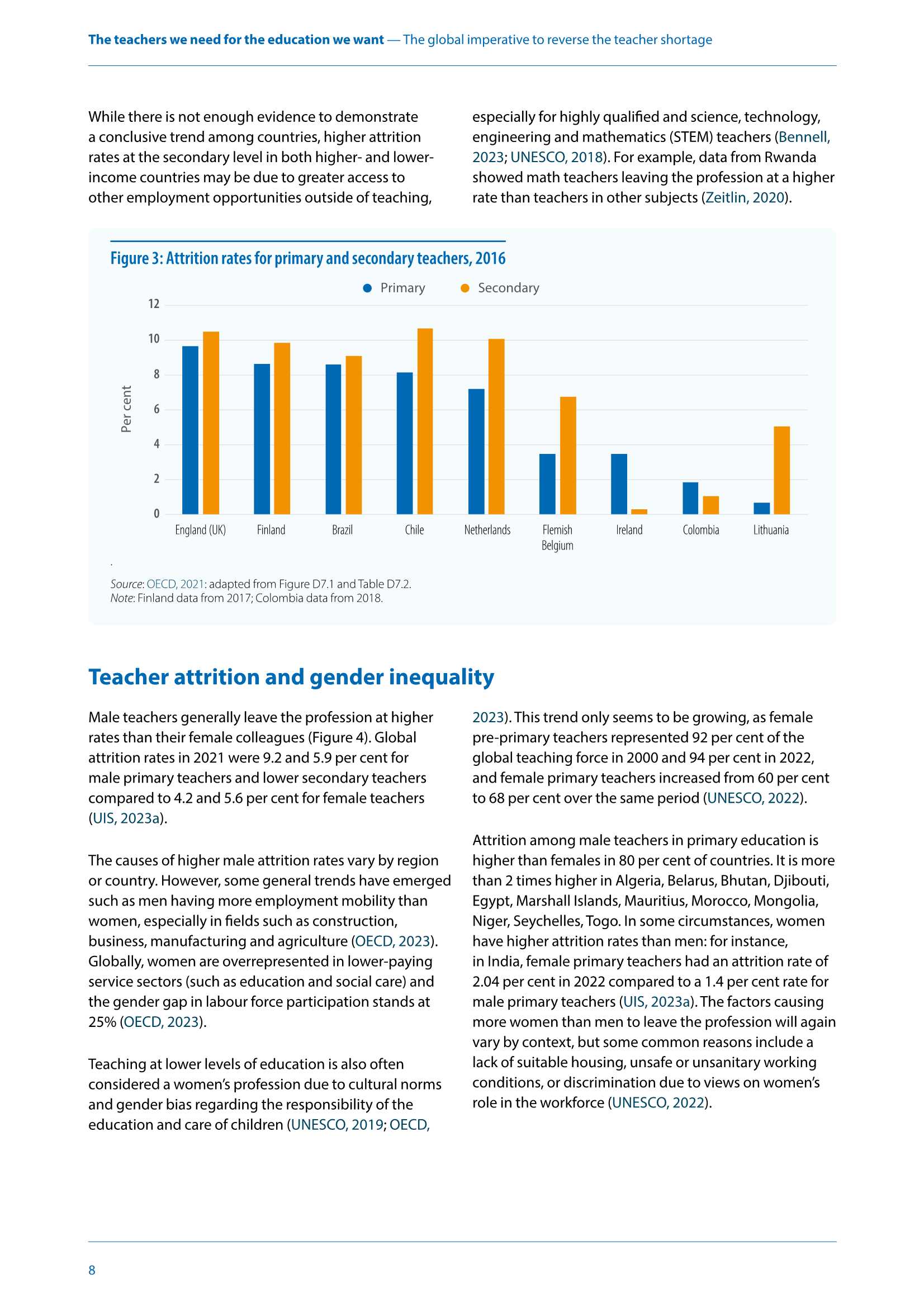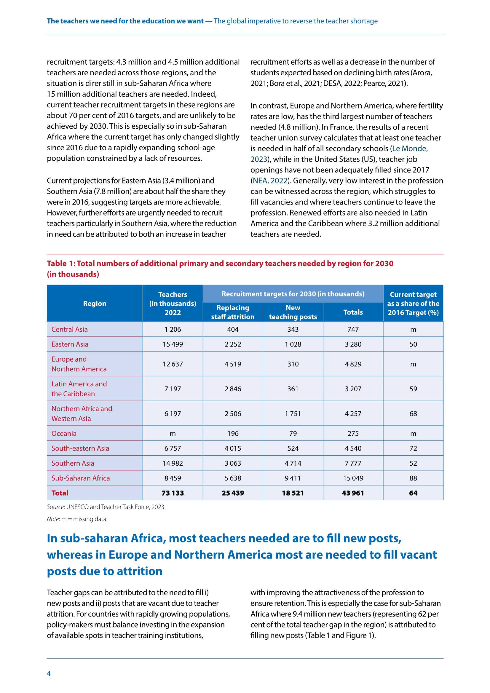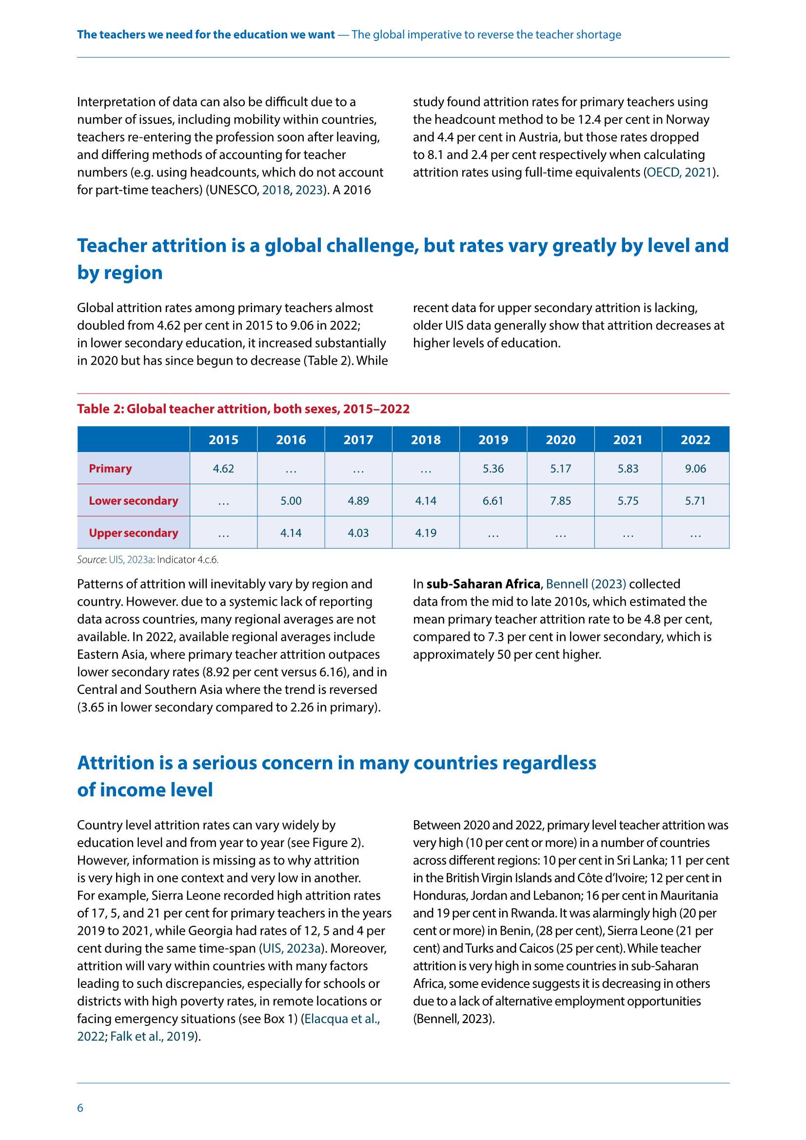 全球小学教师的流失率几乎翻了一番,世界上许多国家仍然存在严重的教师短缺问题,占全球新教师的7/10。而这是确保人人接受优质小学和中学教育所必需的。在南亚和撒哈拉以南非洲尤其如此,